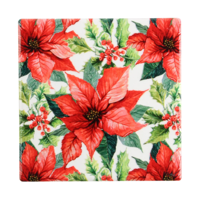 Red Poinsettia Textured Printed Ceramic Coaster - Set of 6