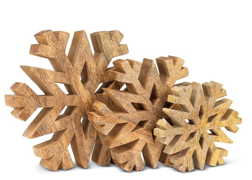 Let it snow indoors this season with our Small Thick Cutout Snowflake! Crafted from mango wood, this bold statement piece showcases the natural grain and texture of the wood, adding an organic and woodsy feel to mantles, tables and more. Available in other sizes.