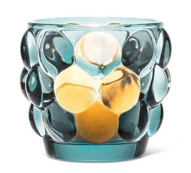 Enhance your ambiance with our Bubble Glass Votive in navy. Crafted with exquisite detail, this votive showcases a unique bubble glass design, creating a captivating play of light and shadows. Standing at 3 inches, it's perfect for illuminating your space with the warm glow of candles. The bubble texture adds a touch of modern elegance, making it a chic and versatile addition to your decor.