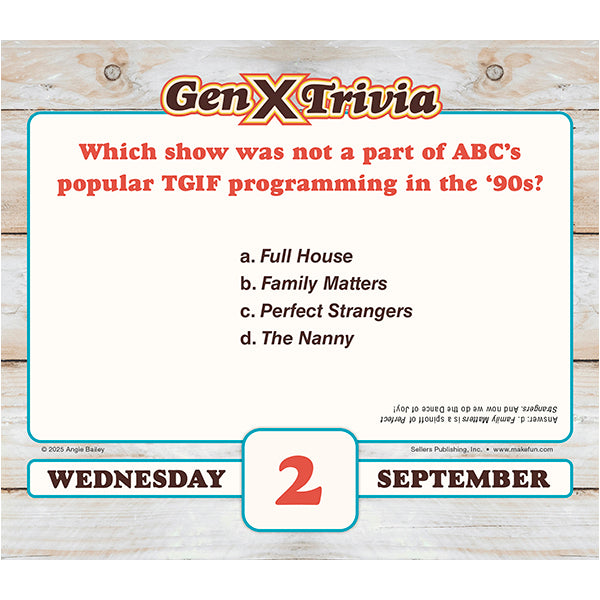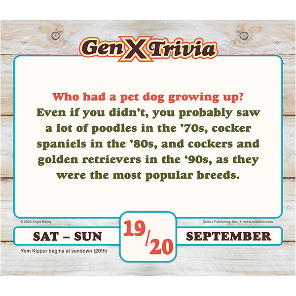 Gen Xers — you know who you are! You were children in the 1970s and teenagers in the 1980s. You went to the roller rink, were told to “just say no to drugs,” fawned over Molly Ringwald, and watched MTV. This new daily calendar will test your memory on the rad lore, pop culture, facts, and trends that shaped our generation. This entertaining trivia calendar shows a lot of love for all things Gen X.