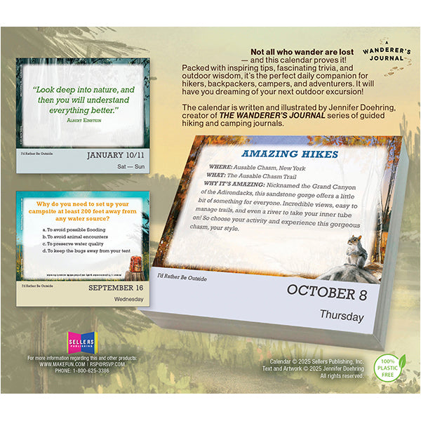 Last year, more than 175 million Americans participated in outdoor activities. This new calendar is written and illustrated by Jennifer Doehring, an avid outdoor enthusiast, and is full of inspiring tips, trivia, and knowledge — perfect for hikers, backpackers, campers, and ramblers.