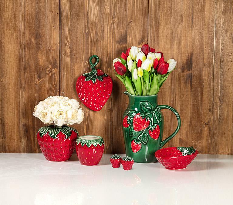 Add some sweetness to your spice game. This stoneware salt and pepper set features plump strawberries and leafy tops – the perfect pair to perk up your table with a little garden flair. 2.5"H.